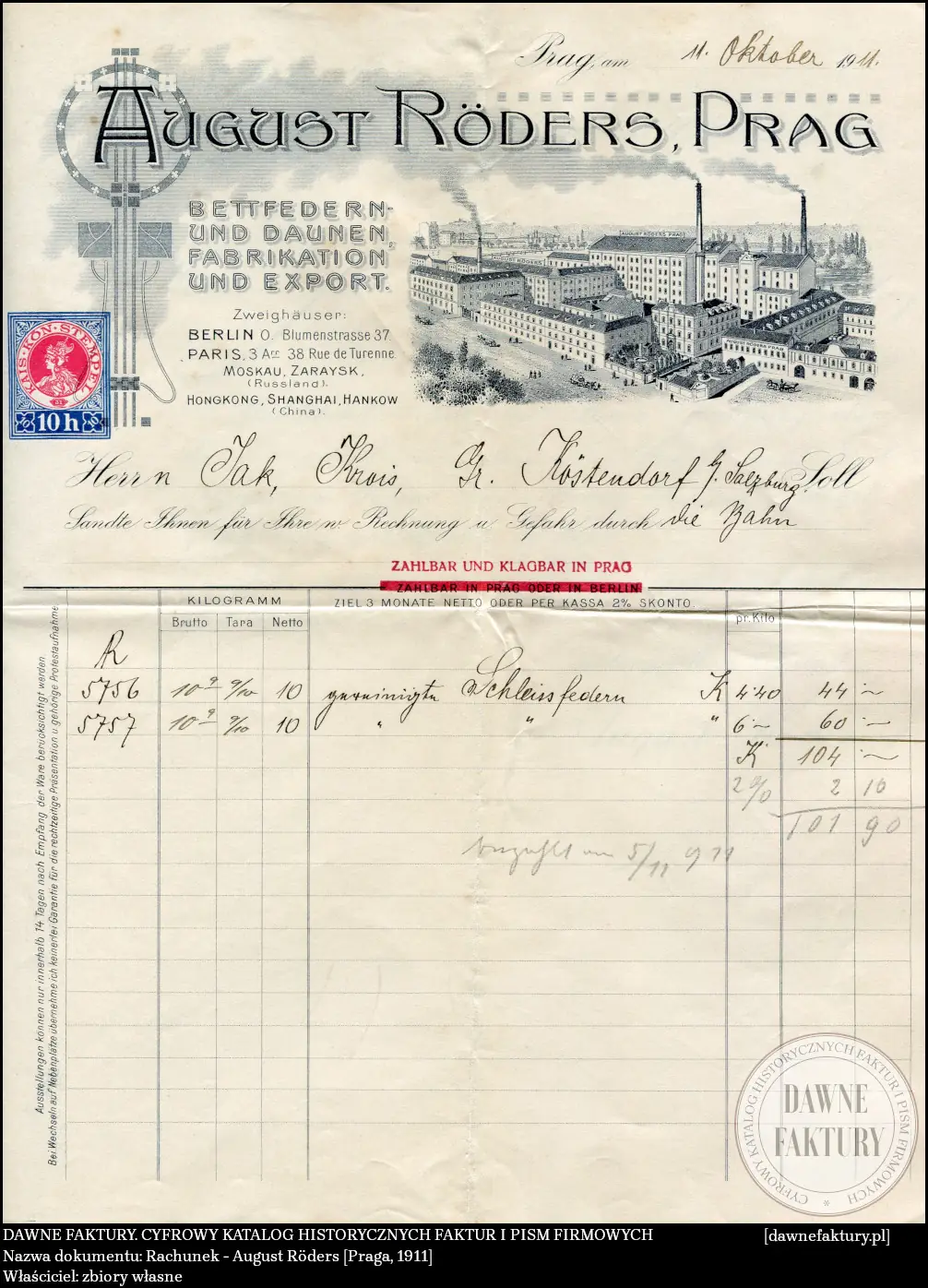 Faktura – August Röders [Praga, 1911]