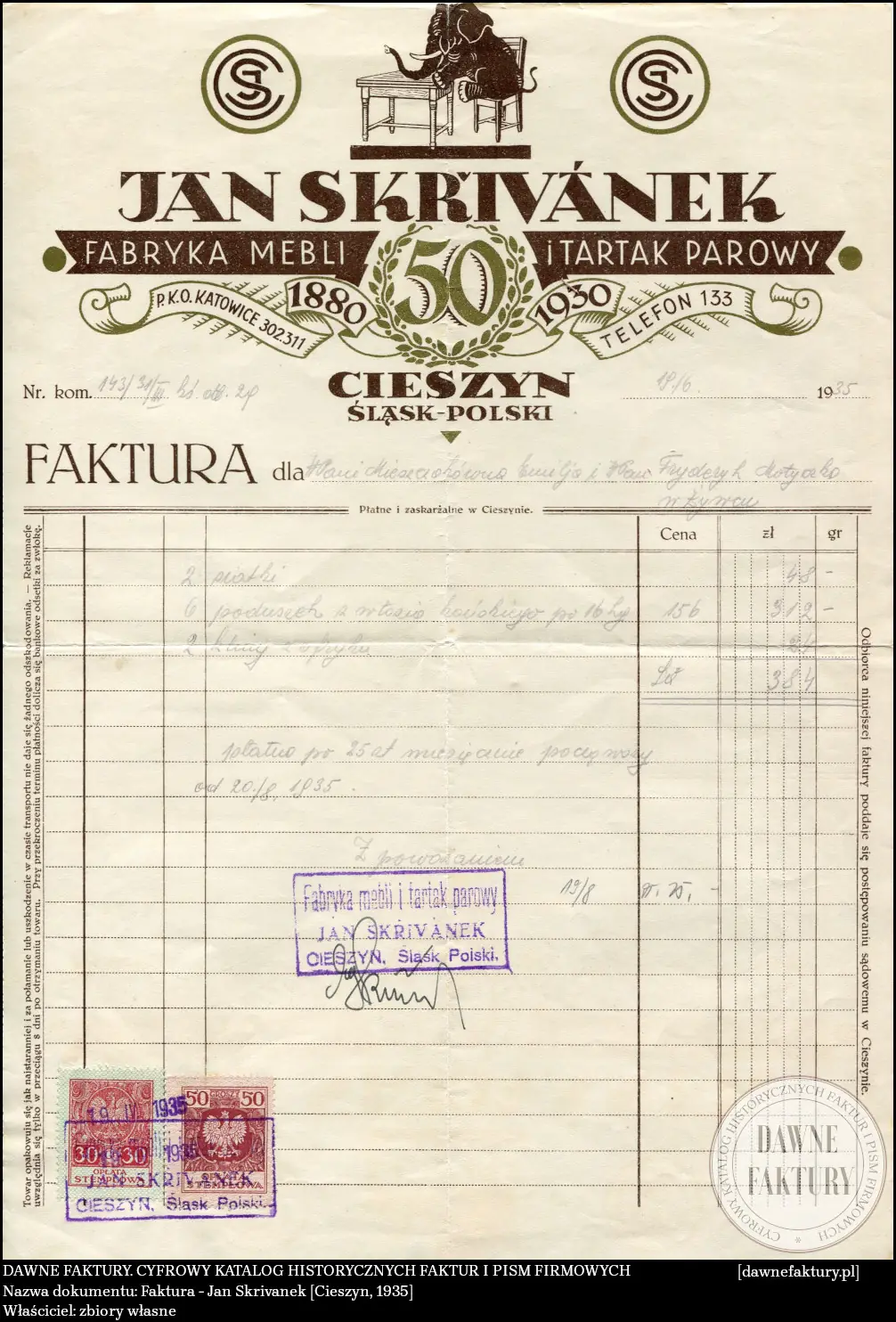 Faktura – Jan Skrivanek [Cieszyn, 1935]