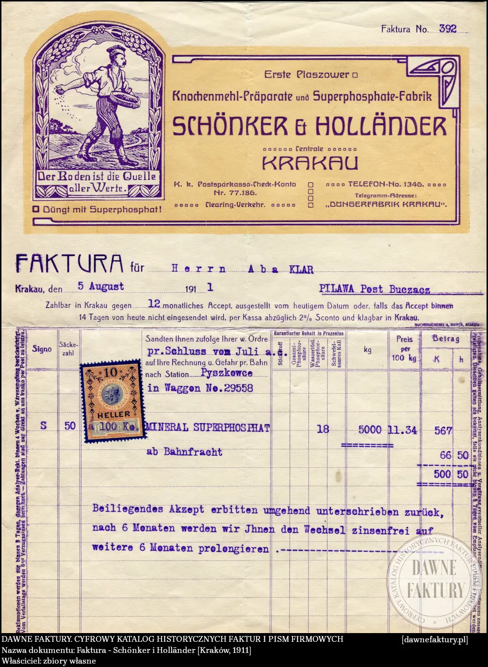 Erste Plaszower Knochenmehl-Präparate und Superphosphate Fabrik Schönker & Holländer