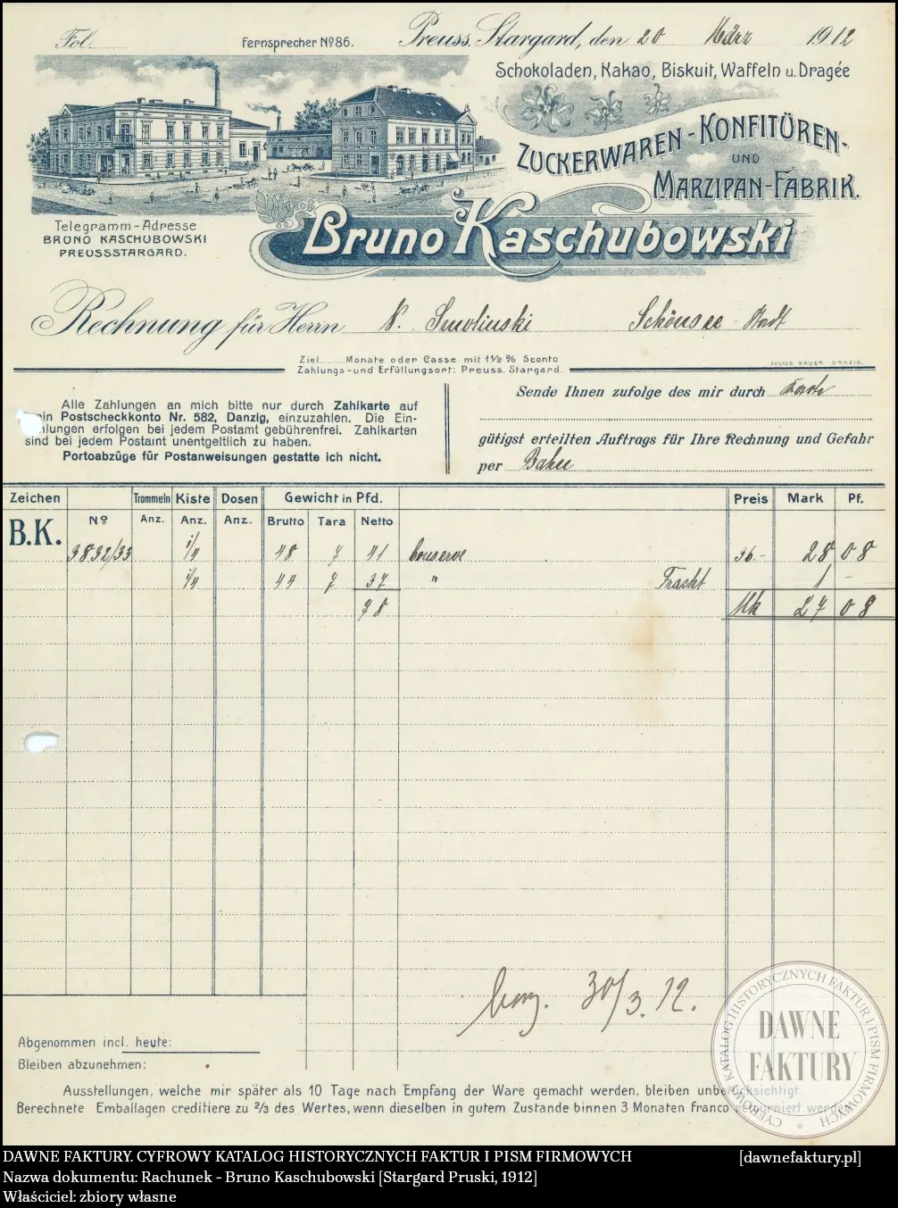 Zuckerwaren- Konfitüren- und Marzipan- Fabrik „Bruno Kaschubowski” [Preuss Stargard] -> Fabryka Wyrobów Cukierniczych, Konfitur i Marcepanu „Bruno Kaschubowski” w Stargardzie Pruskim