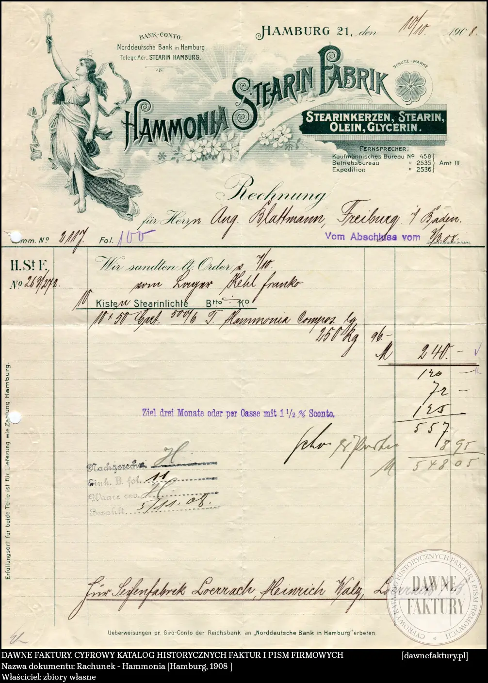 Rachunek – Hammonia [Hamburg, 1908]