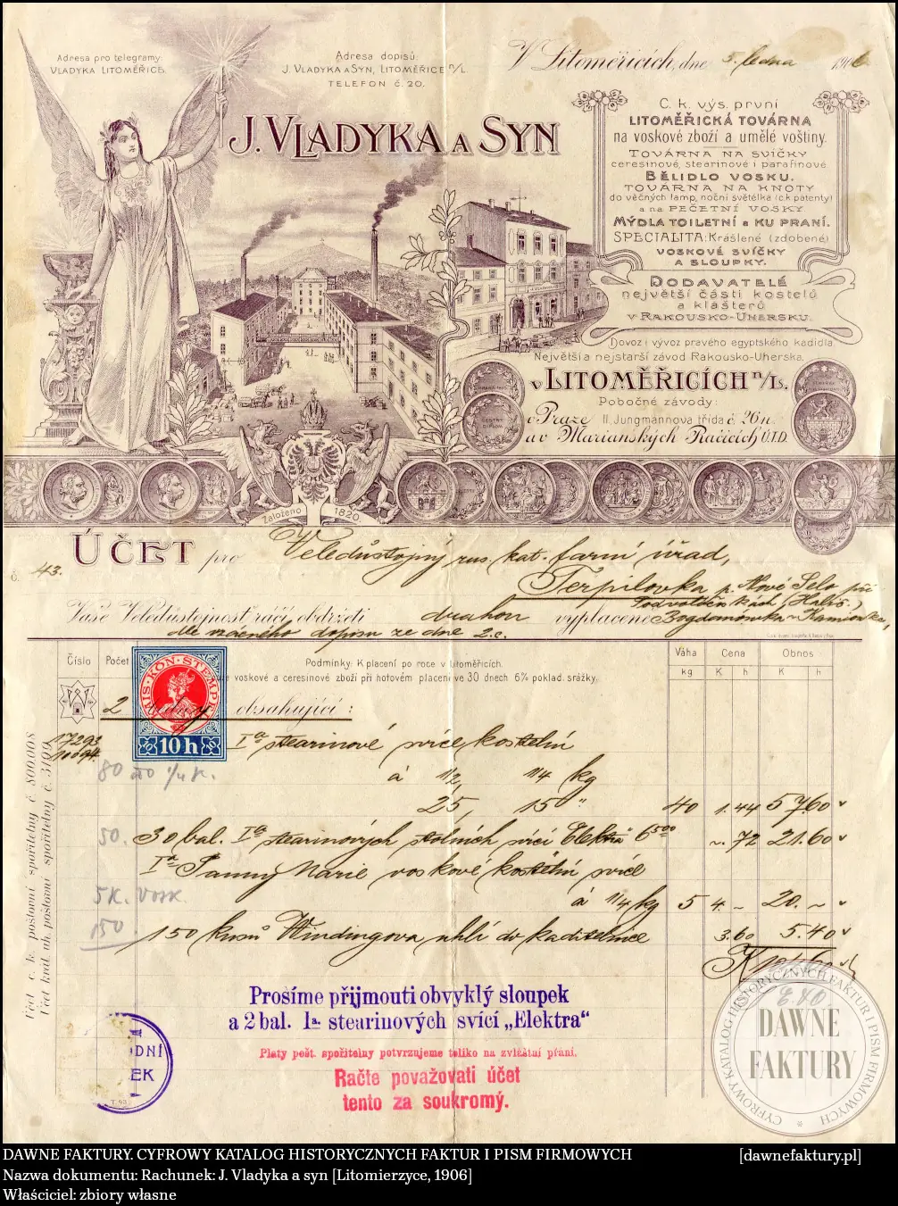 Rachunek – J. Vladyka a syn [Litomierzyce, 1906]
