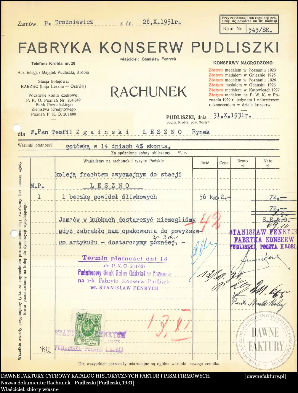 Rachunek – Pudliszki [Pudliszki, 1931]