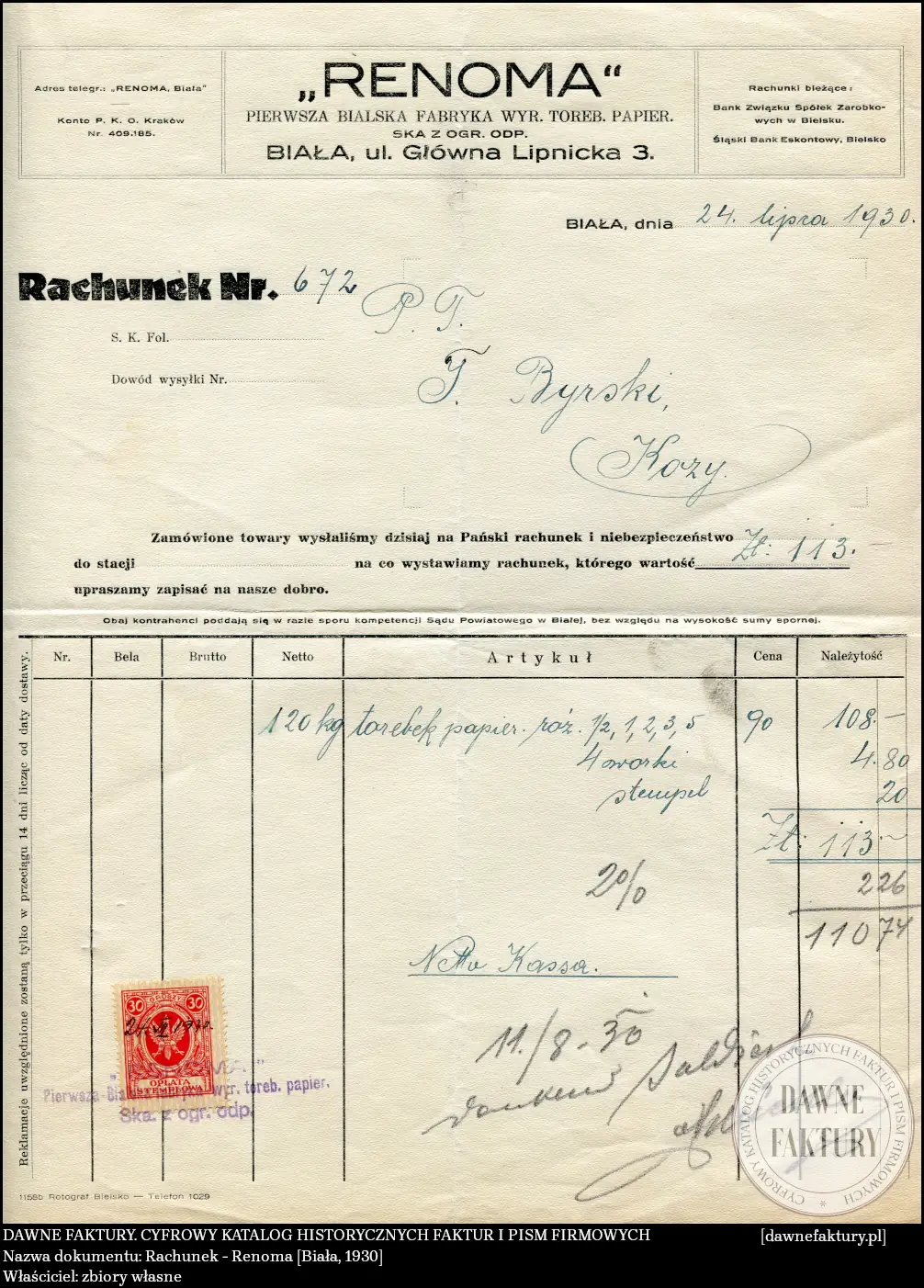 Rachunek – Renoma [Biała, 1930]
