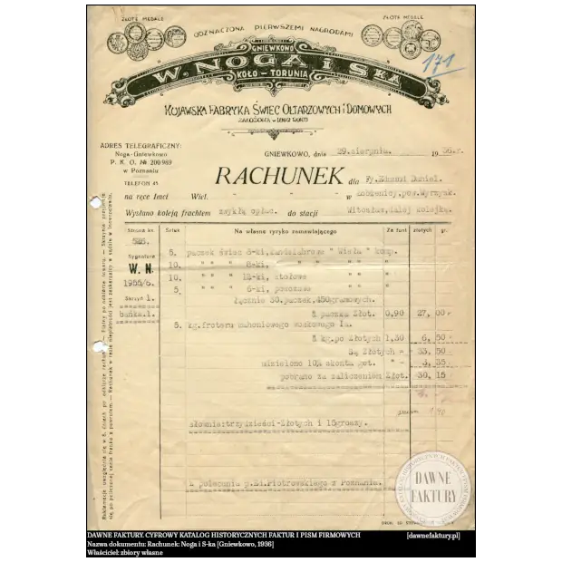 Rachunek – Noga i S-ka [Gniewkowo, 1936]