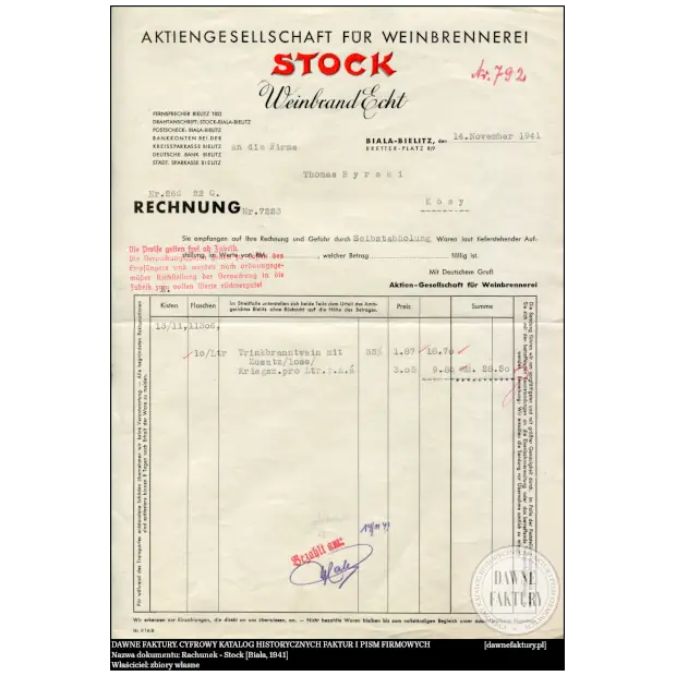 Rachunek – Stock [Biała, 1941]