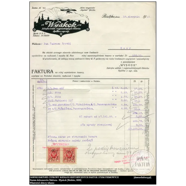 Rachunek – Jan Bartuschka [Bielsko, 1935]