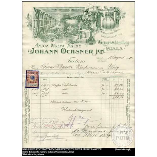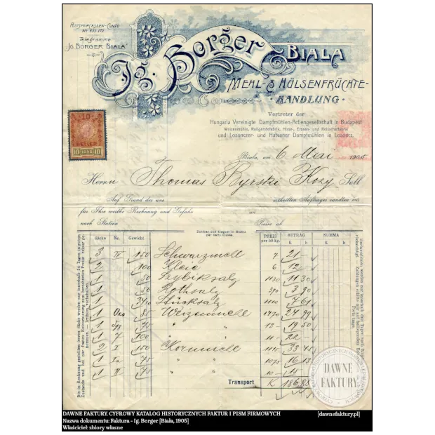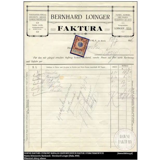Rachunek – Bernhard Loinger [Biała, 1916]