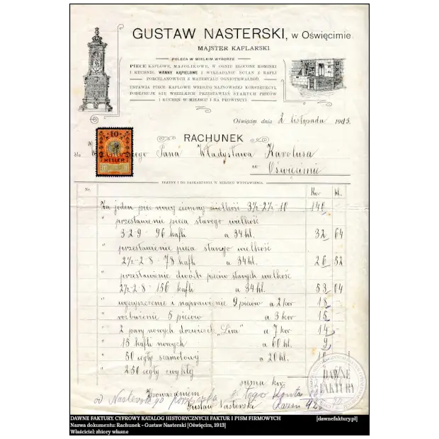 Rachunek – Gustaw Nasterski [Oświęcim, 1913]